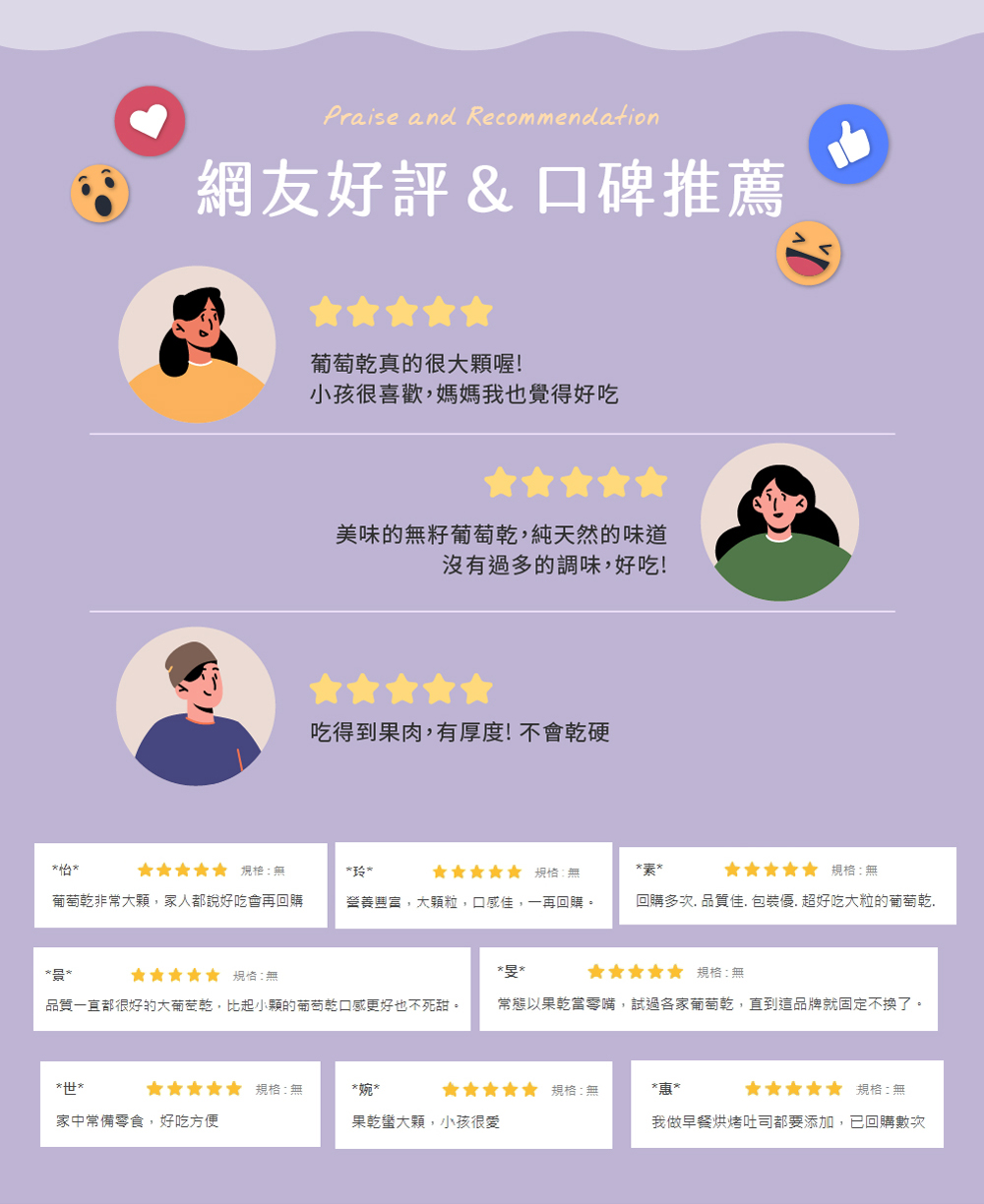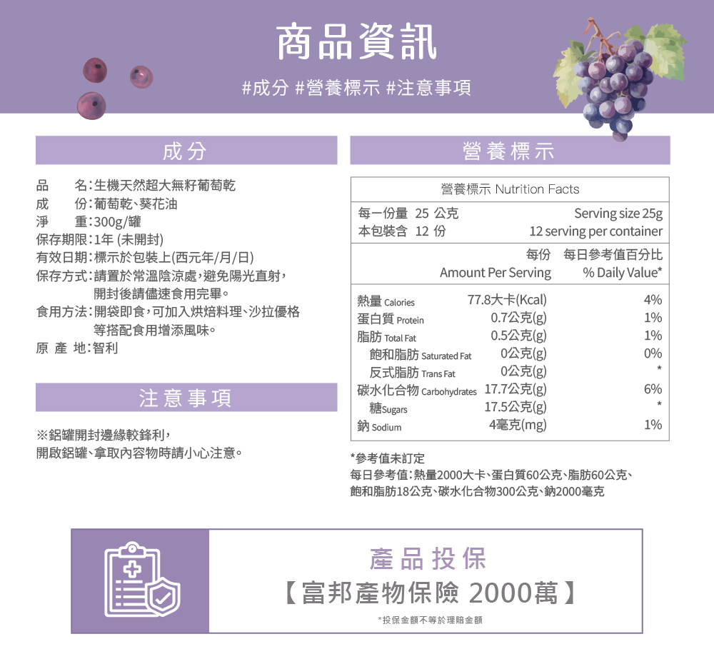 。嚴選智利葡萄,日曬乾燥,天然美味