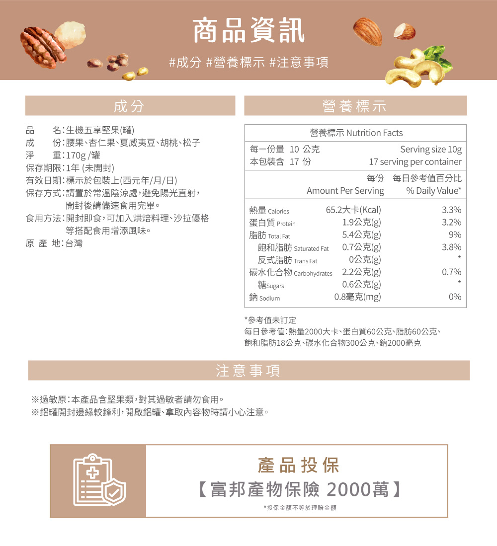※過敏原:本產品含堅果類,對其過敏者請勿食用。